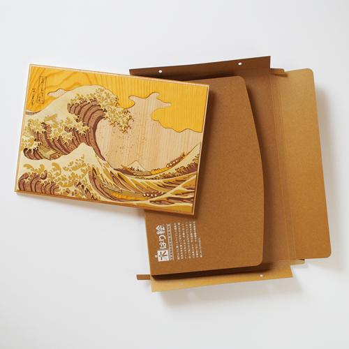 それは、今回はハードレベルの「神奈川沖浪裏」の例でしたが、ミディアムレベルの木はり絵は、完成サイズが一回り小さいため、少しだけ手順が違います。