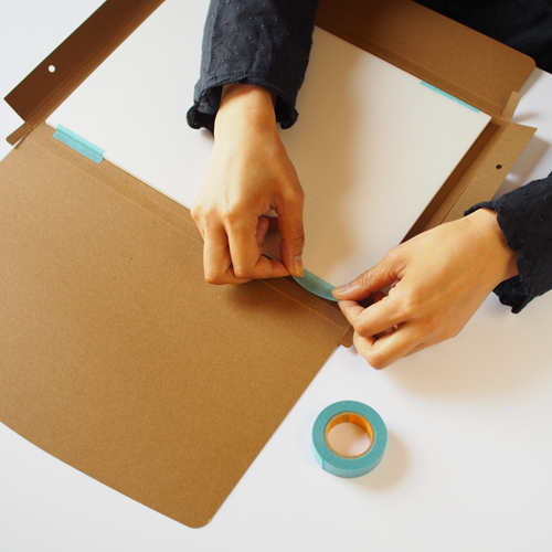 画像では、わかりやすいように、作業用マスキングテープを使いましたが、せっかくなので、おしゃれなテープがある方は、見えないところにもこだわってくださいね。