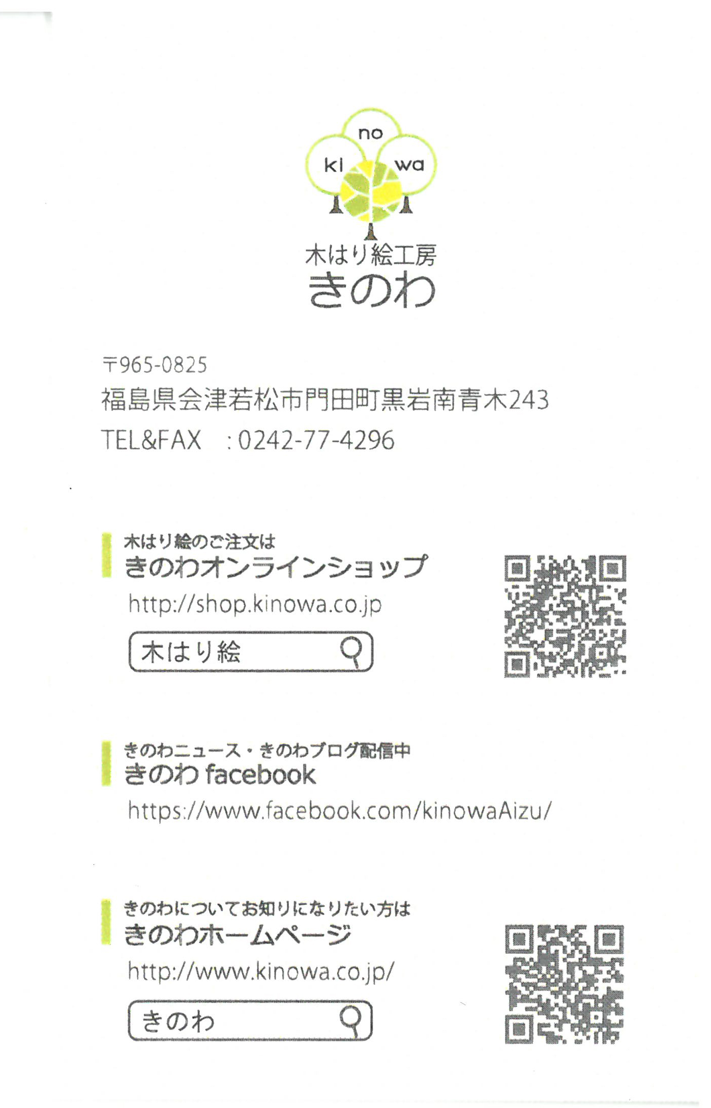 きのわのデザイナーのセンスとしては、QRコードは入れたくなかったそうですが、これははずせません。