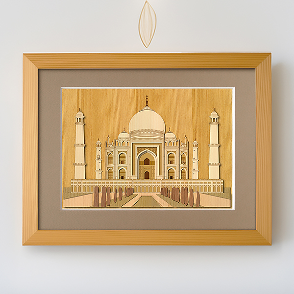 白い大理石でつくられたインドの壮大な霊廟を木で表現しました。