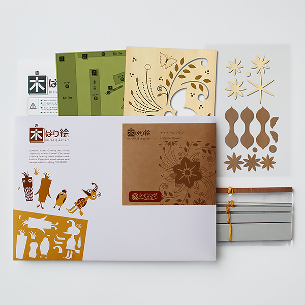 クイリングシリーズは、くるくる巻く作業を楽しんでいただきたいので、木はり絵用のパーツはカット済みのものがセットになっており、ほかのシリーズのようにカッターで線に沿って切っていく作業はありません。