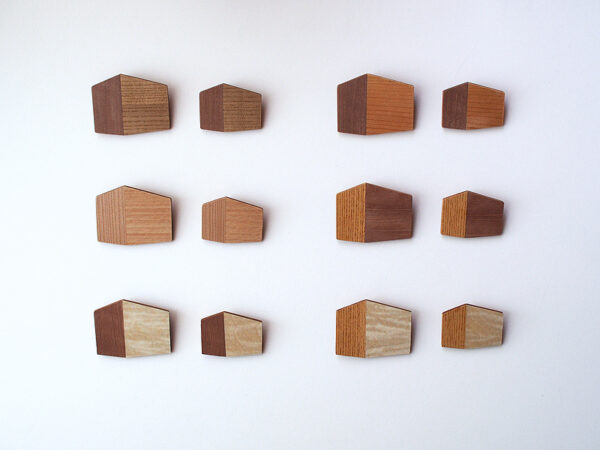 そのため木はり絵で使用する樹種が廃番になるとこのブローチの樹種も変更になるのですが、今回突板置き場をあれこれ探していたら、なつかしい「ブナ」を見つけました。